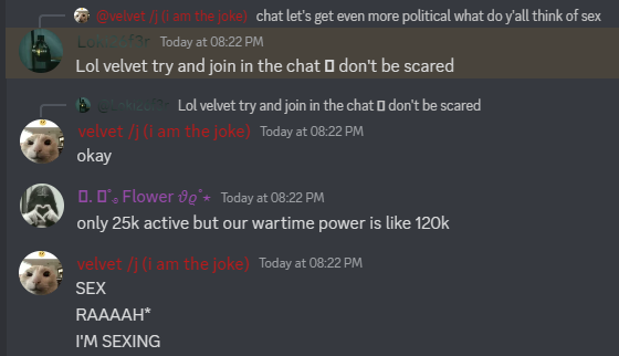 Else this entire TL;DR, "sex" is also widely used as a stupid and satire joke for the funnies. It's very common to someone saying "SEX!!!" after they've met Unbloated. Because it's an absolutely terrible joke.